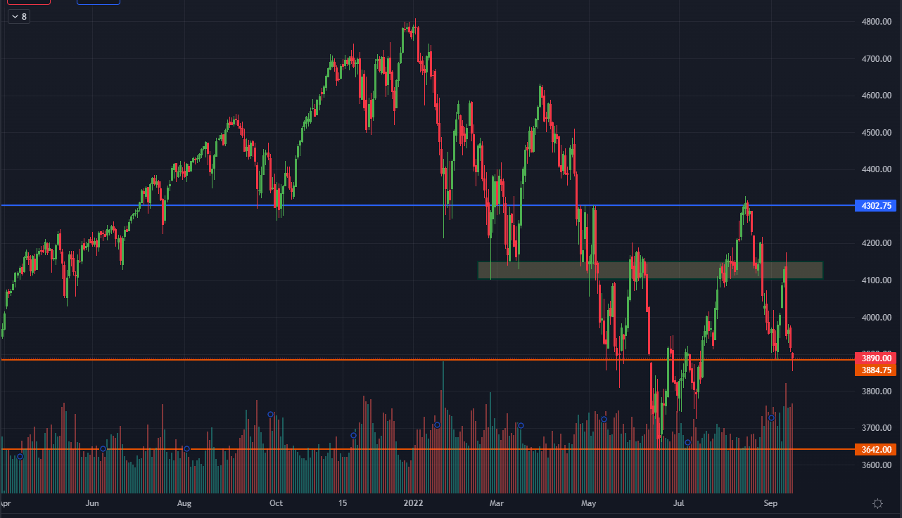 FOMC is coming up on Sept 20 - Sept 21, which will define the move of the SPY. I think a 75 bps hike will give the market some relief, while a 100 bps hike, which is highly unlikely but still possible, would crash the markets and I would expect a swift move to range lows.