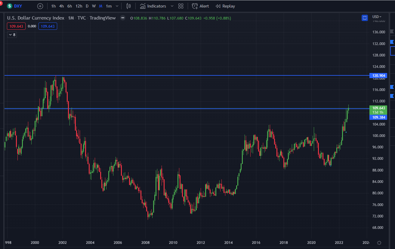 If DXY reaches 120, this will rekt risk assets like growth stocks, BTC, and ETH.